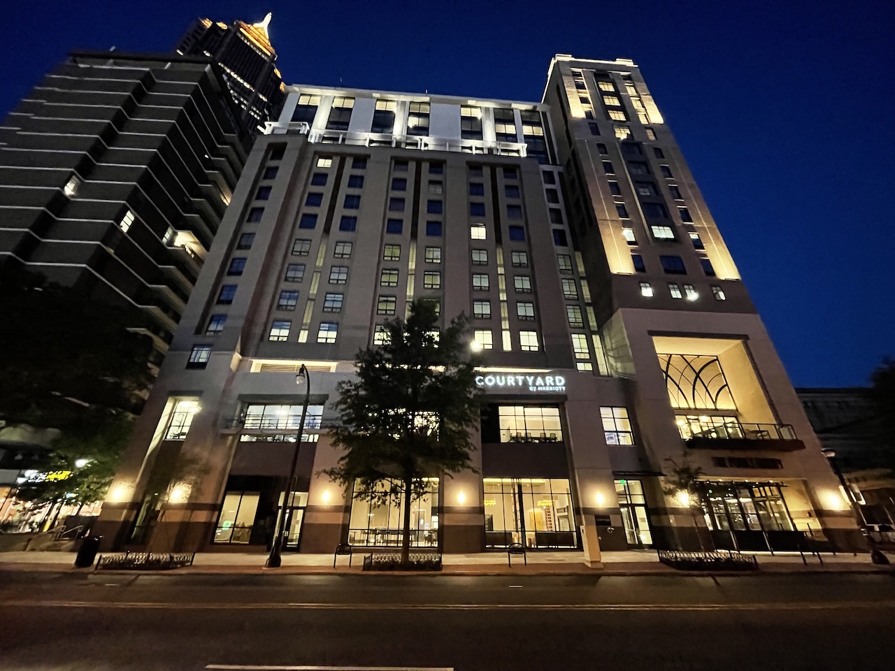 Every city has its iconic location. New York City has Times Square, San Francisco has The Wharf, and Chicago has the Magnificent Mile. Atlanta has Peachtree & Ponce de Leon – which is the home for this new dual-branded Marriott property. The other three corners of this intersection are home to respectable neighbors: the 1910 Georgian Terrace Hotel, the 1913 Ponce Apartments and the 1929 4,665-seat, Fabulous Fox Theater. The parking lot site had been the location of a 1980’s attempted office tower development, which managed excavate a four-story basement and get deep foundations installed before the developer failed. So, our client partnered with the surface parking owner, and in return for the site air- rights, agreed to develop 120 elevated parking stalls for the parking operator in the new building.